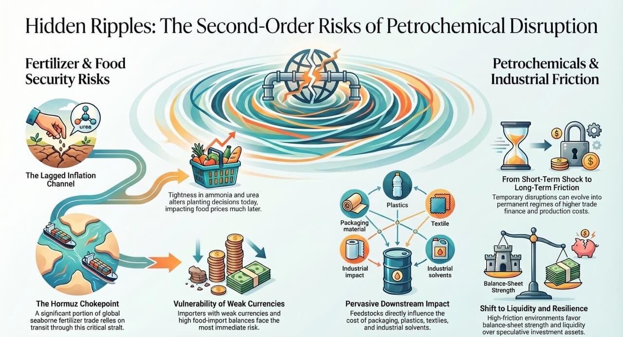 The most undercovered part of the current disruption sits in fertilizer and petrochemicals. Those markets rarely lead the public narrative, yet they shape food prices, industrial production, and the cost base of a wide range of manufactured goods.