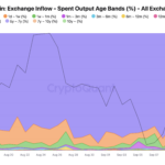 However, there has also been a notable increase in exchange inflows from long-term holders — those who have held their coins for over three months. The increase in inflows from coins held for over three months — up from 0.55% on Sep. 11 to 7.59% on Sep. 12 — suggests that some long-term holders are also beginning to take profits. While short-term traders dominate inflows, the slight uptick in long-term selling reflects growing caution among investors who may see current price levels as an opportunity to exit.