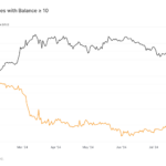 Bitcoin addresses holding at least 10 BTC have declined in 2024. The number of such addresses began the year at approximately 155,500, with the number falling through the first quarter to hit a low of around 152,600 in late March.