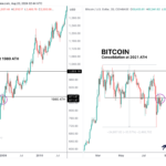 Capriole Investments has drawn parallels between Bitcoin's current behavior and gold's performance in 2008. In 2008, gold consolidated near its 1980 all-time high for nine months, the first time it had done so since the 2004 launch of the Gold ETF GLD, before surging 180% over the next four years.