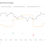According to Newhedge, Bitcoin's mining difficulty has decreased by -0.78%. This is the second negative adjustment in the last four, following the Bitcoin halving on April 20. The halving led to a delayed hash rate drawdown due to sustained high fees from Runes, which incentivized some miners to stay online.