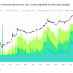 A noticeable resurgence of whale activity, involving transactions of $10 million or more, has been observed in the entity-adjusted relative on-chain volume breakdown.