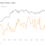 Bitcoin's Options 25 Delta Skew (1 Week) indicates a fluctuating market sentiment. This metric, representing the difference in implied volatility between 25-delta puts and calls, has seen significant variability since May 2021. The recent trend loosely correlates with Bitcoin's price movements, reflecting heightened trader uncertainty. In the past months, the skew has oscillated sharply, aligning with Bitcoin's approach towards and retreat from the $60,000 mark.