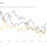 This reduction in volatility extends to both realized and implied volatility. Realized volatility, an indicator of actual price changes, has been on a consistent downward trend. Similarly, implied volatility, a predictive measure of future market unpredictability, has also dropped.