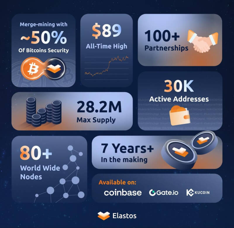 As Elastos enters its next phase of growth, participants can join the ecosystems CRC DAO by acquiring merge-mined ELA, which has a market cap of $48,542,586 and is secured by nearly 50% of Bitcoin’s hashrate (366.01 EH/s, equivalent to 244.008 Frontier Supercomputers). ELA offers 6+ years of proven security, a fixed cap of 28.22M tokens to be fully mined by 2105, and 3.29% emissions via its Essentials Wallet, ensuring scarcity and predictability for holders. Available on Centralized Exchanges (Coinbase, KuCoin, Gate.io, Huobi, Bitget, Crypto.com) and Decentralized Exchanges (Uniswap, Chainge Finance, Glide Finance), ELA empowers holders to shape Elastos’ future through CRC governance—driving innovation, reinforcing Bitcoin-level security, and building the next generation of decentralized applications.