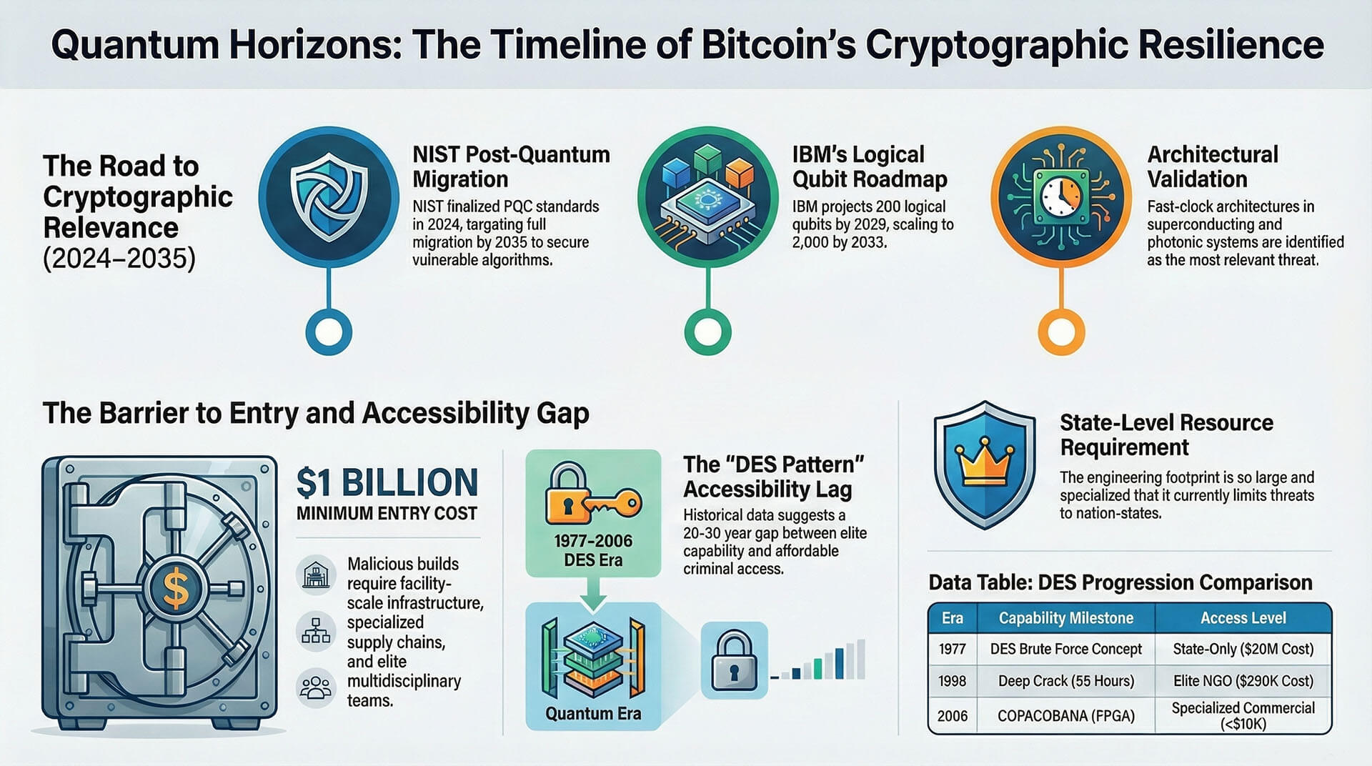 For Bitcoin, the relevant question is not only when a top lab can demonstrate a cryptographically relevant quantum attack, but also how long it takes for that capability to move down the cost curve into something smaller actors could realistically access and operate.